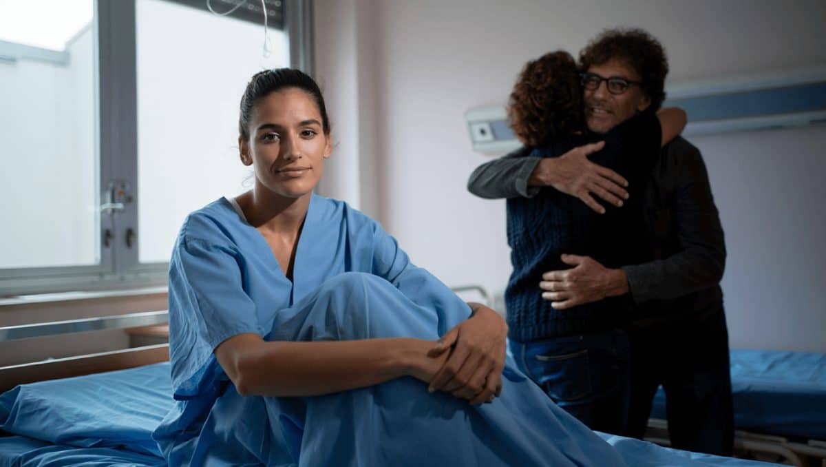 Nella foto Elena è vicina a sua madre, Patty, entrambe sorridenti ma visibilmente in ospedale. Il pigiama della donna e l’ambiente clinico non lasciano dubbi: quello non è un ritratto qualunque, ma il momento in cui il dolore lascia spazio a un primo respiro di conforto.